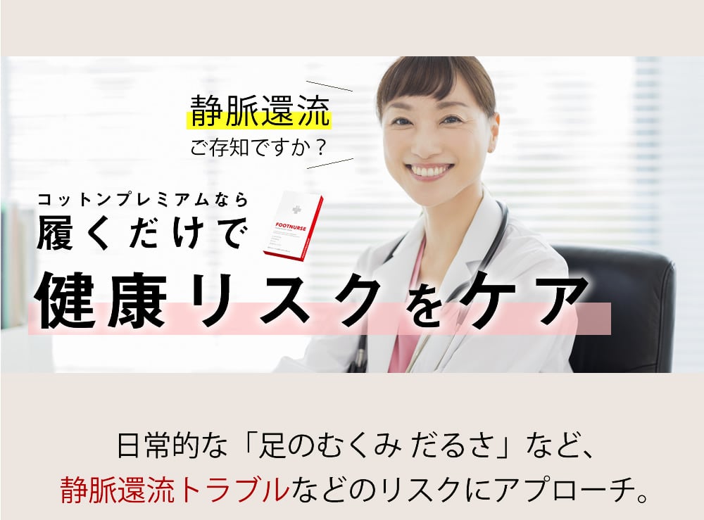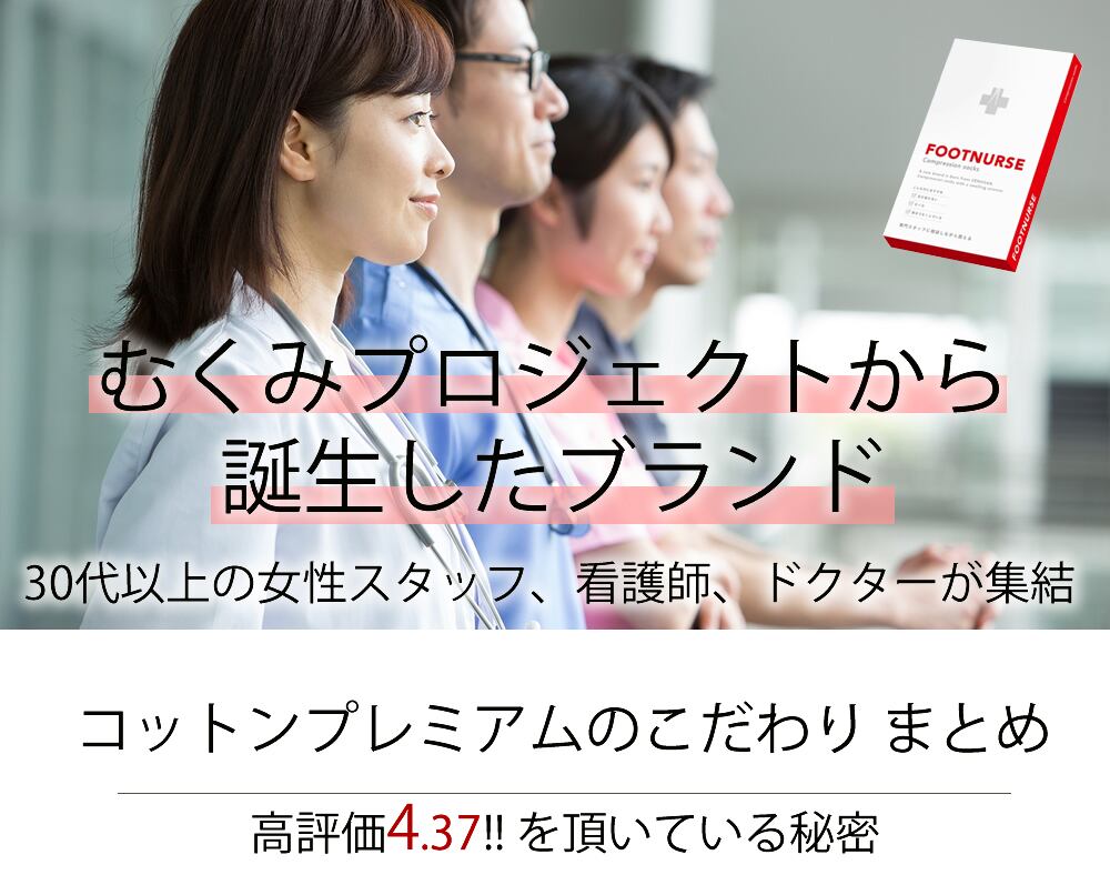 むくみを科学した着圧ソックス医療用弾性ストッキングの専門メーカー“フットナース”が本気で考えた普段使いの圧迫ソックス、コットン。 ソックスを変えるだけで「足が変わる」実感、お試しください。
